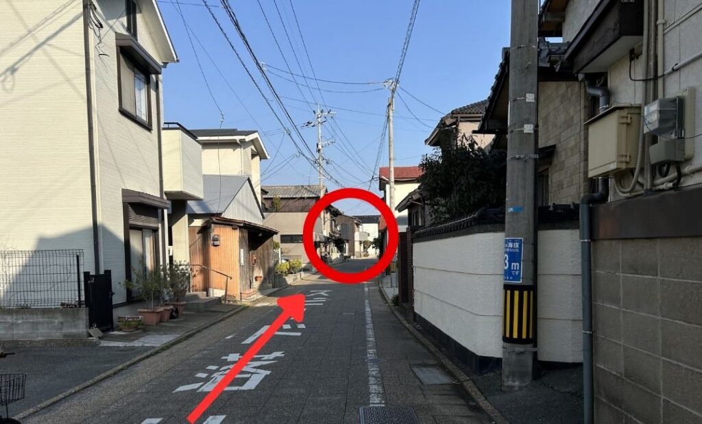 思わず少し寄り道をしたくなるような景色を横目に、200m直進してください。