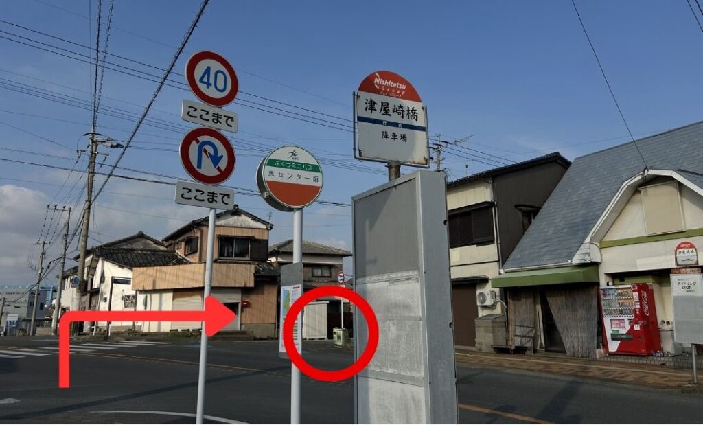 ▶︎西鉄バス 【バス停:津屋崎橋】から徒歩3分(200mほど) ▶︎ふくつミニバス 【バス停:魚センター】から徒歩3分(200mほど)