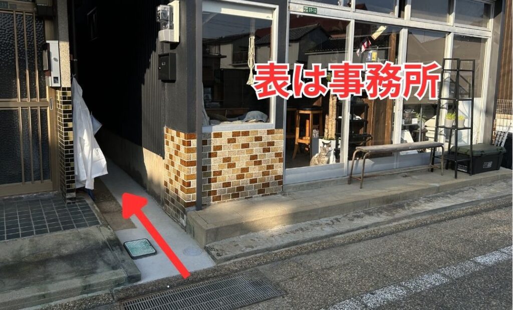 表が事務所になり、鍼灸院は裏側になります。