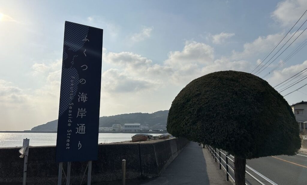 ②ふくつの海岸通りの看板が右手に見えます